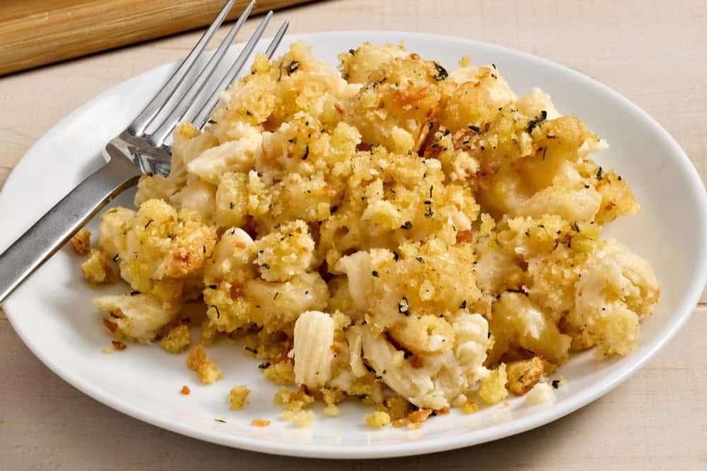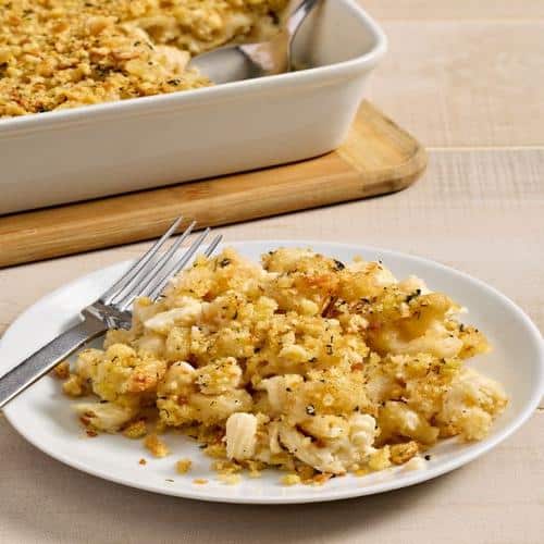 One subtle-but-effective way to incorporate breadcrumbs is as a topping later for casseroles, gratins and other creamy bakes. Take mac-and-cheese to another level with smoked gouda, and a top layer of golden herbed breadcrumbs. When the breadcrumbs are made with Tribeca Oven Sourdough Baguette, the bread’s pleasant tangy flavor helps balance the richness of the gooey cheese.